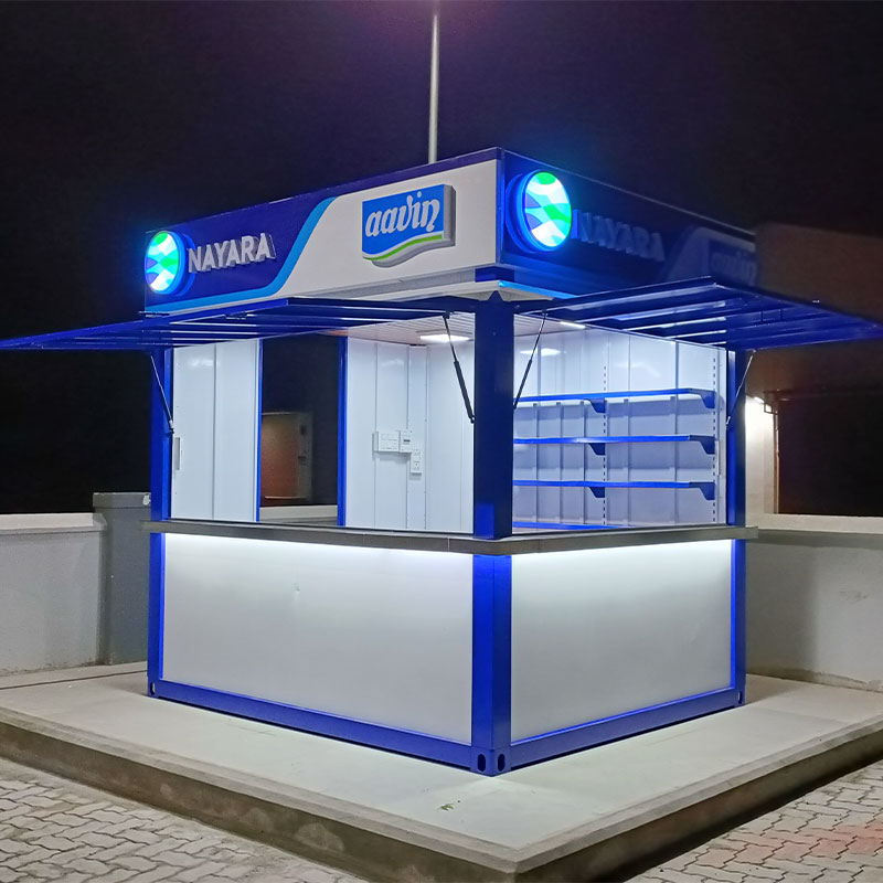 Enquire NowOur Spacious & Versatile kiosk model larger in size is perfect for various users such as cafes, small hotels, pharmacy shops and more. Available in traditional ground floor, outdoor G+1 and indoor configurations. It can be customized to your size and specification.