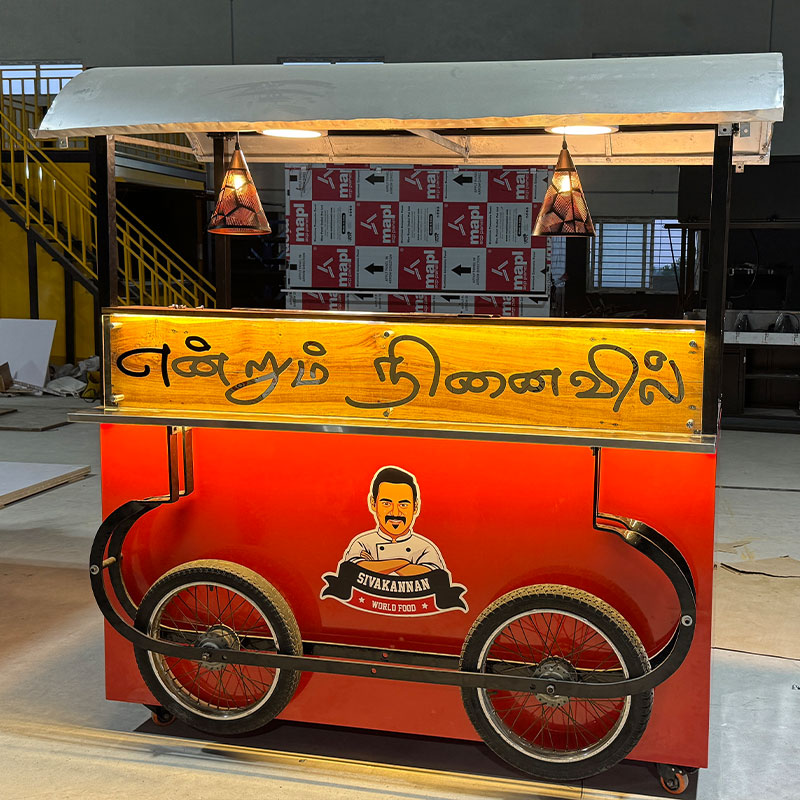 Ideal for small business, this compact kart model is perfect for a variety of ventures including icecream, briyani stalls, chat stalls, waffle cards and more. It's small size and affordability make it an excellent choice for starting your dream project.